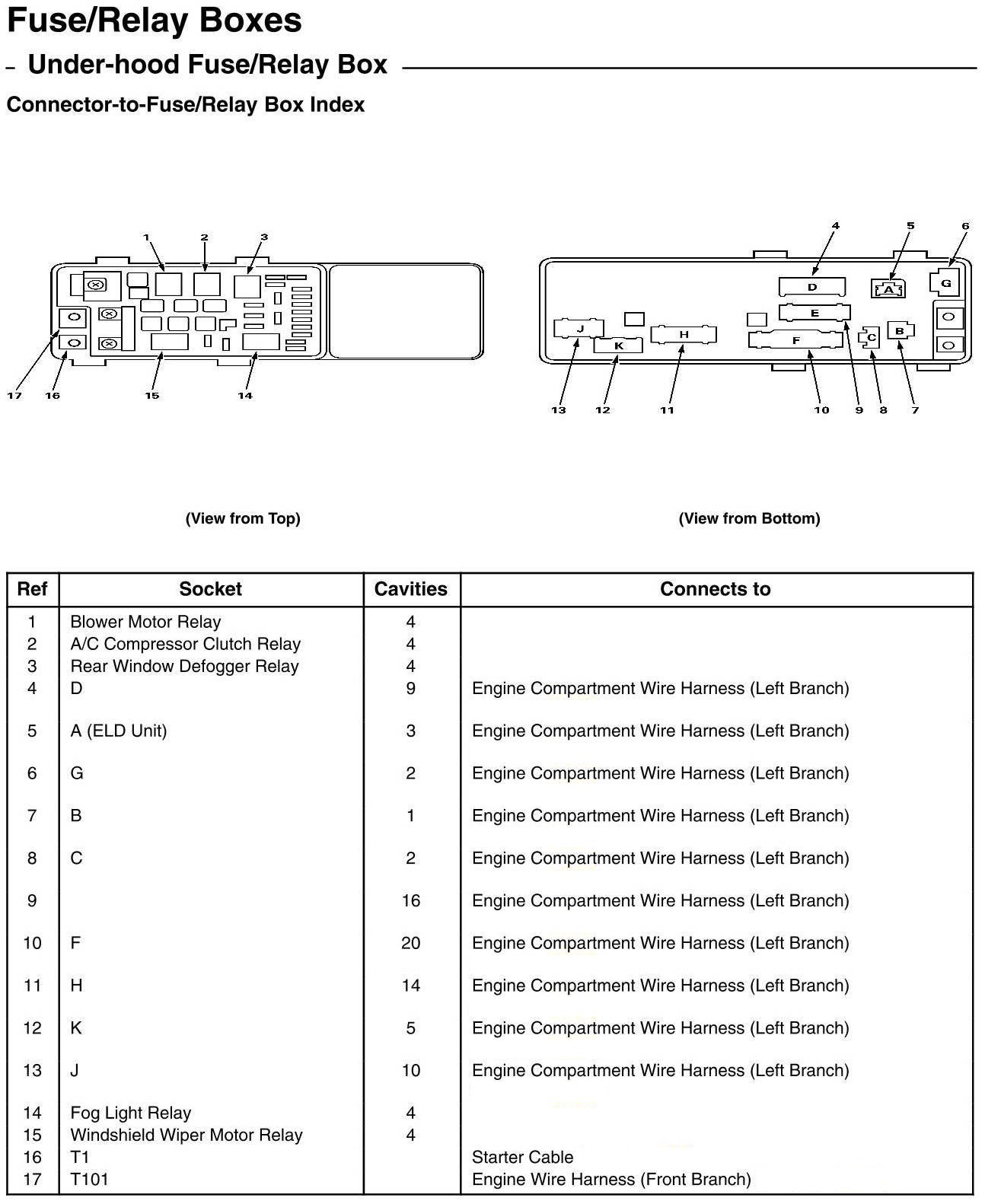 Under-hood Fuse/Relay Box - Connector-to-Fuse/Relay Box Index