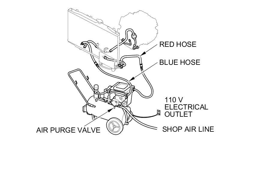 7. Connect a shop air hose (regulated to 100 to 125 psi) to the air purge valve.