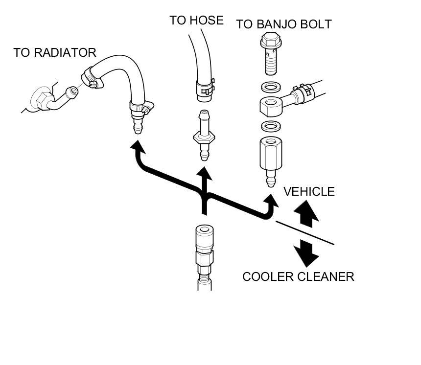 4. Select the appropriate pair of fittings, and attach them to the radiator, to the hoses, or to the banjo bolts for flow through the ATF cooler cleaner.