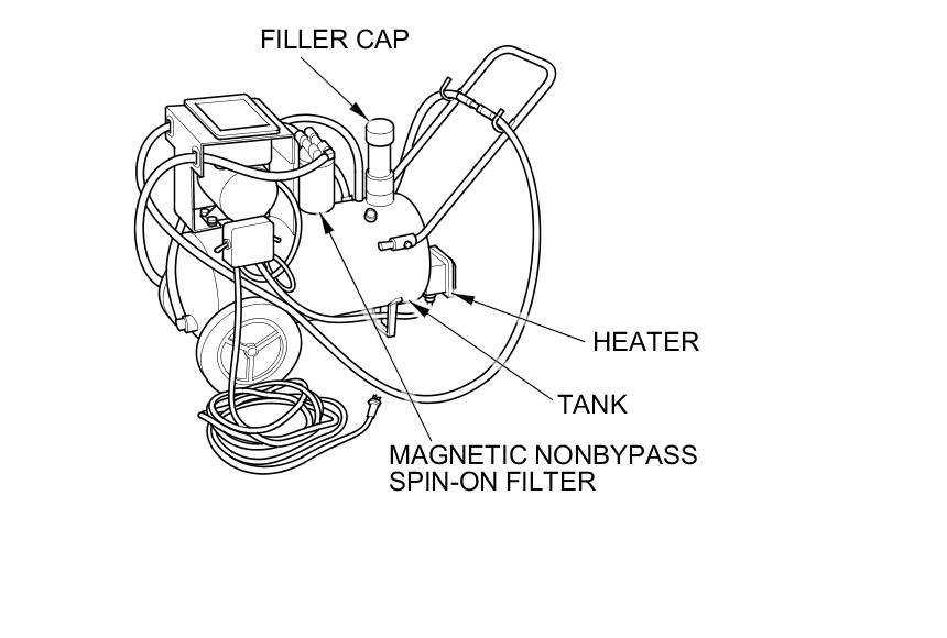 NOTE: If the red indicator above the HEAT toggle switch comes on, the fluid level in the tank is too low for the tank heater to work (see step 1 of this procedure).