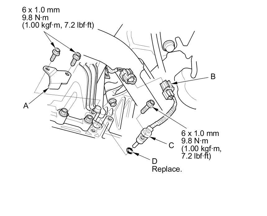4. Install the rear differential fluid temperature sensor with a new O-ring (D) in the reverse order of removal.