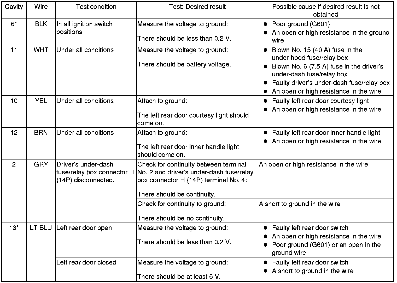 Interior Lights (Left Rear Power Window Switch) Input Test