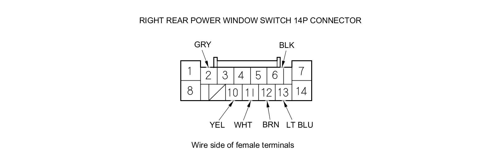 - If all the input tests prove OK, replace the right rear power window switch Passenger's Power Window Switch Test/Replacement.
