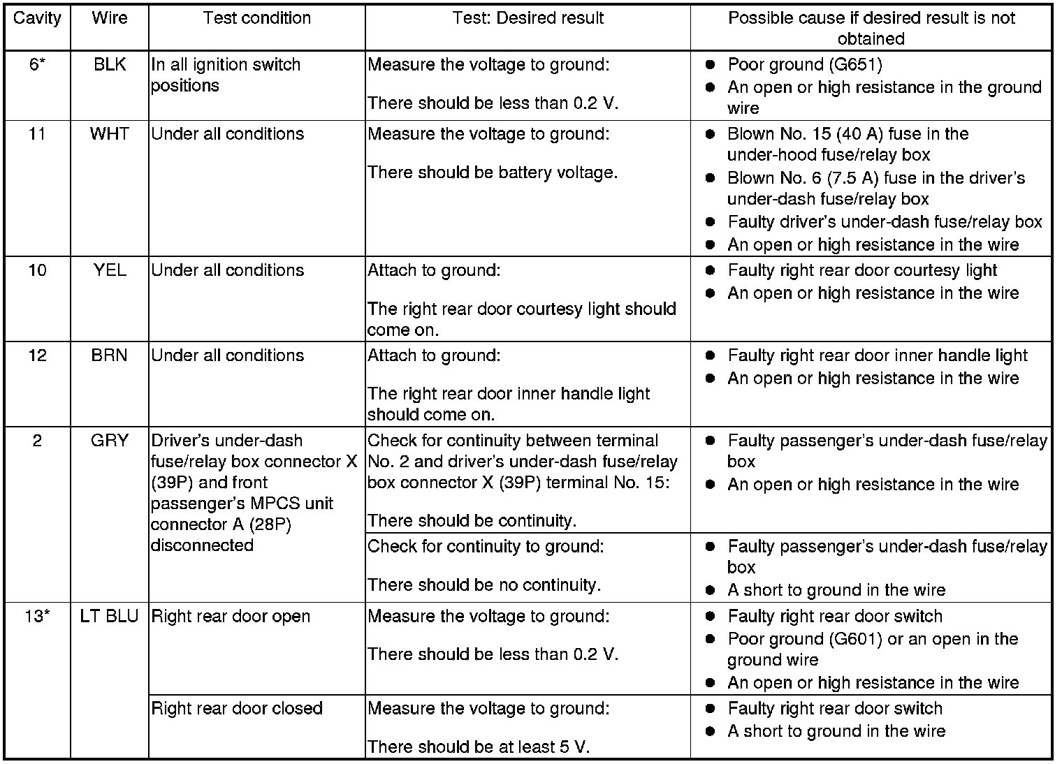 Interior Lights (Right Rear Power Window Switch) Input Test