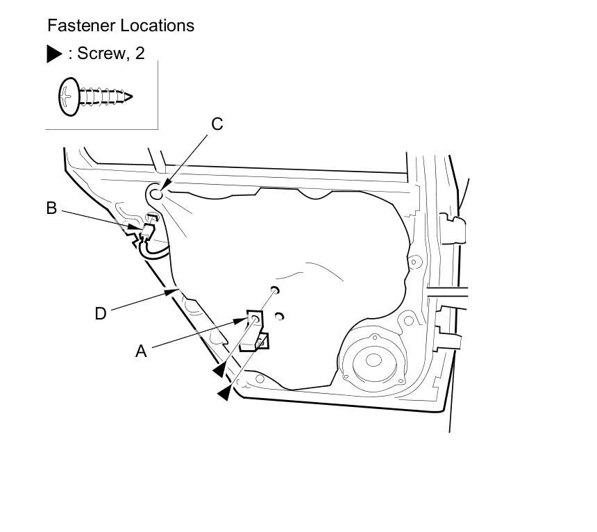 - When reinstalling the door panel, make sure the plastic cover is installed properly and sealed around its outside perimeter to prevent water leaks.