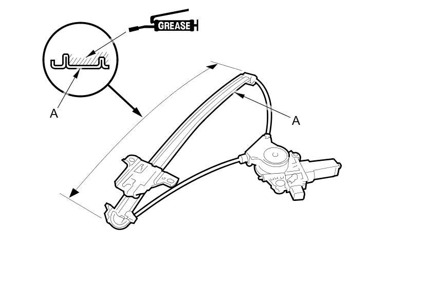 10. Apply multipurpose grease to the sliding surfaces of the regulator (A) where shown.