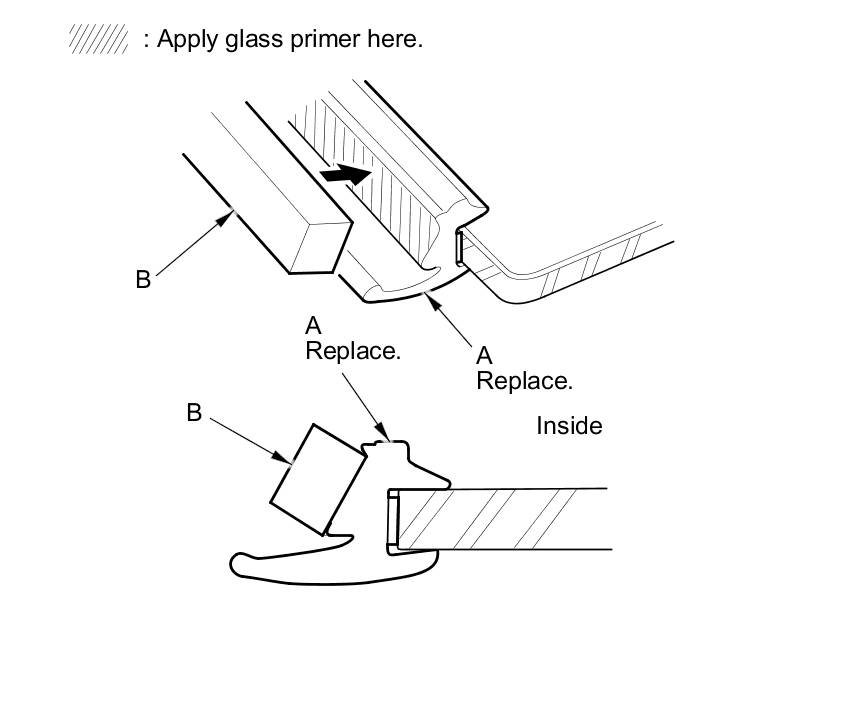 - Do not apply body primer to the windshield, and do not mix up the body primer applicator and the glass primer applicator.