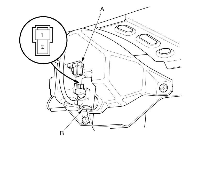 2. Disconnect the 2P connector (A) from the washer motor (B).