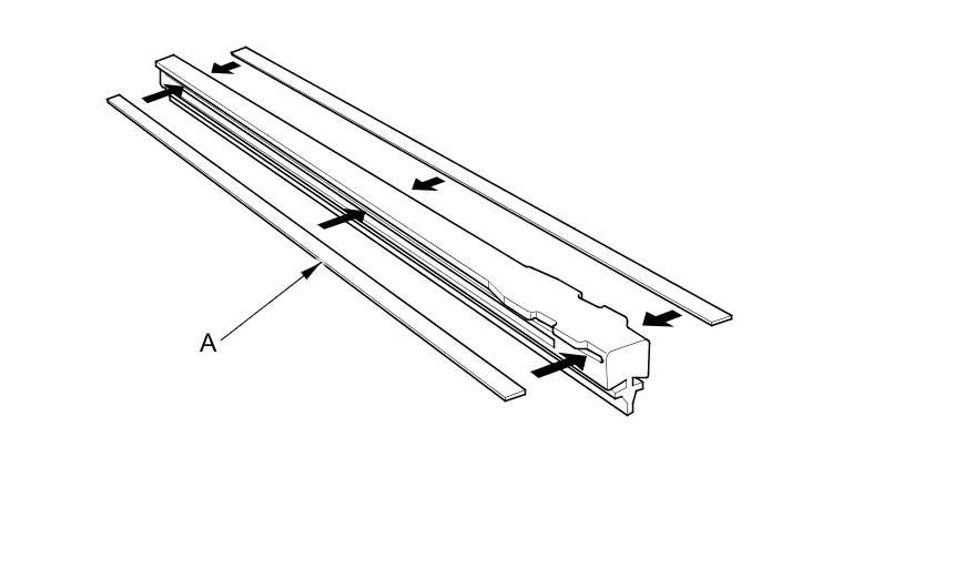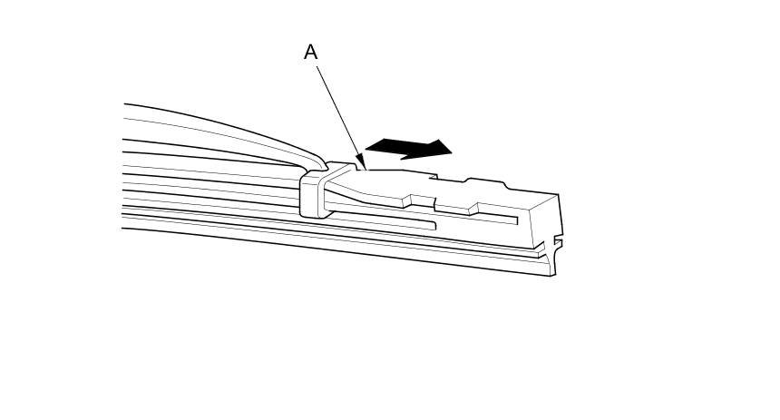 5. Examine the new wiper blades. If they have no plastic or metal reinforcement (A), remove the metal reinforcement strips from the old wiper blades, and install them in the slots along the edge of the new blade.