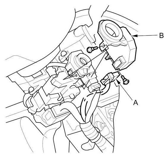 2. Disconnect the 7P connector (A) from the immobilizer-keyless control unit (B).