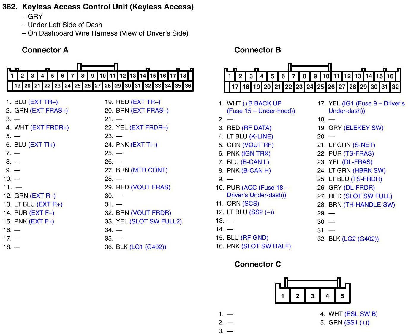 Keyless Access Control Unit (Keyless Access) Connector View
