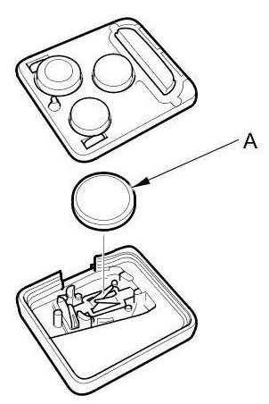 6. Replace the transmitter battery (A) with a new one, and press the lock or unlock button and check the response on the screen of the HDS.