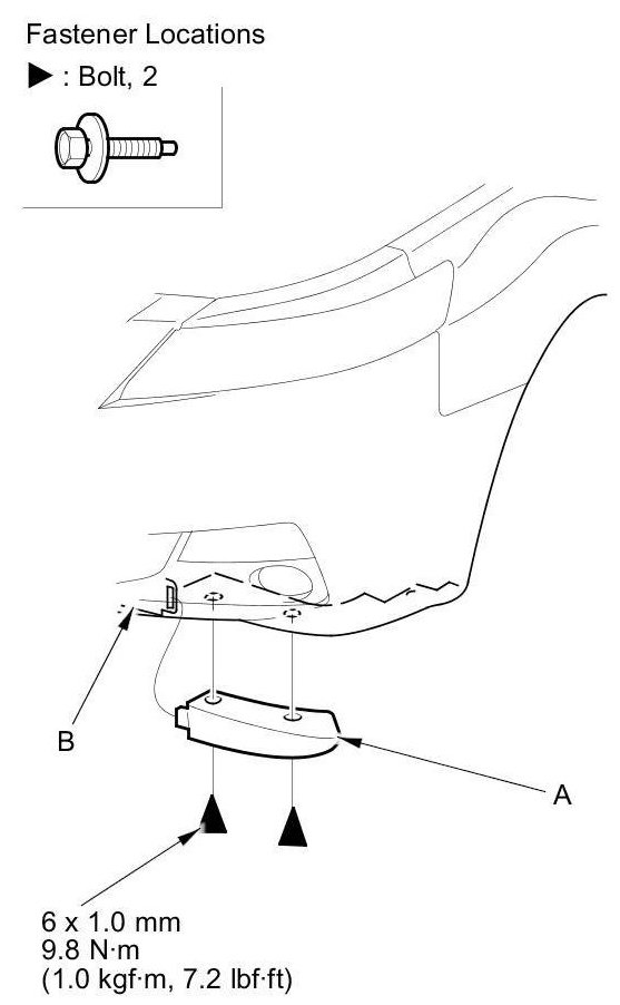 1. Remove the bolts. Release the front bumper strake (A) from the front air guide plate (B), then remove it.