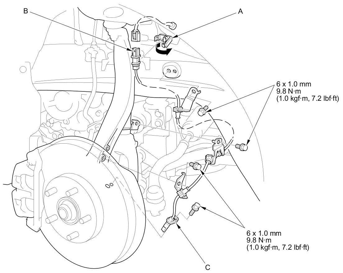 - If the wheel speed sensor comes in contact with the wheel bearing, it is faulty.