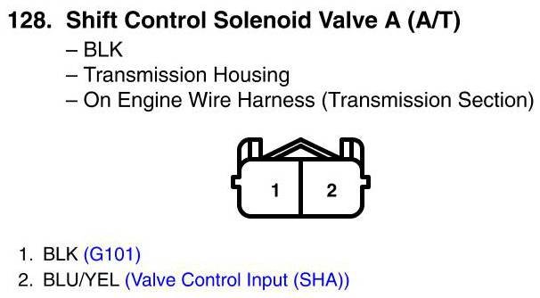View 128 - Shift Control Solenoid Valve A (A/T) Connector View