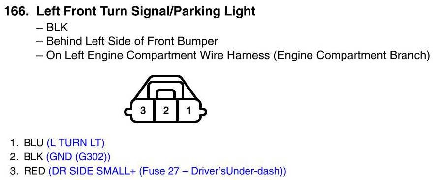 View 166 - Left Front Turn Signal/Parking Light Connector View
