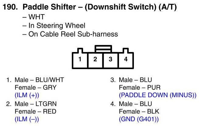 View 190 - Paddle Shifter - (Downshift Switch) (A/T) Connector View