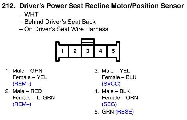 View 212 - Driver's Power Seat Recline Motor/Position Sensor Connector View