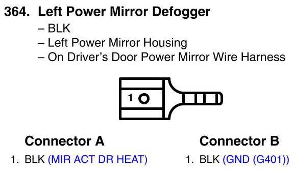 View 364 - Left Power Mirror Defogger Connector View