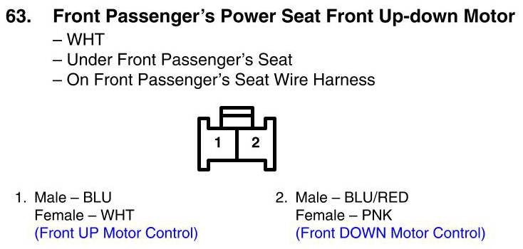 View 63 - Front Passenger's Power Seat Front Up-Down Motor Connector View