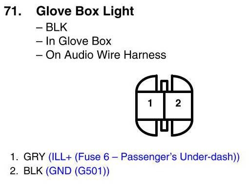 View 71 - Glove Box Light Connector View