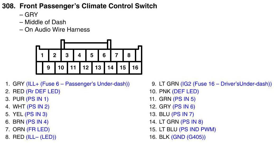 Front Passenger's Climate Control Switch Connector View