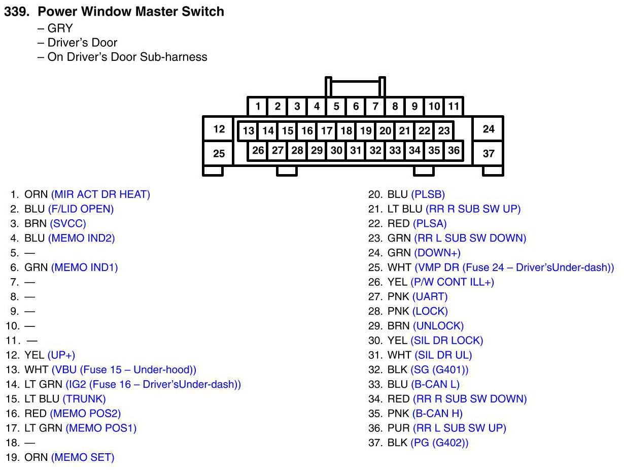 Power Window Master Switch Connector View