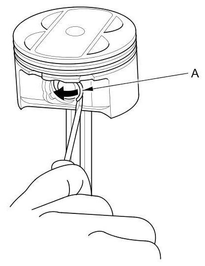 4. Separately heat each piston and connecting rod assembly to about 158 °F (70 °C), then remove the piston pin.