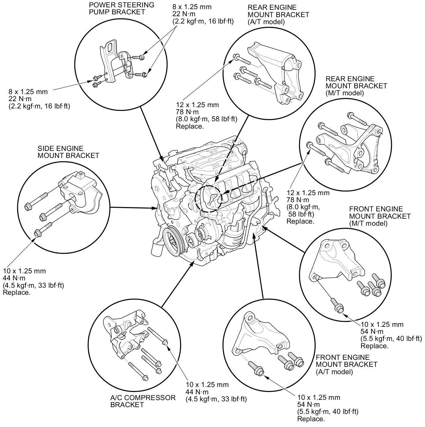 NOTE: Reinstall the mounting bolts/support nuts in the sequence given in the following steps. Failure to follow this sequence may cause excessive noise and vibration, and reduce engine mount life.