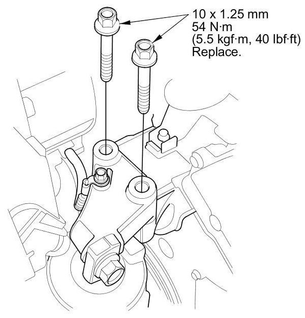 3. Install the new mounting bolts into the upper half of the side engine mount bracket. Tighten the bolts to the specified torque.