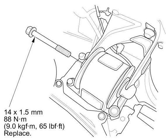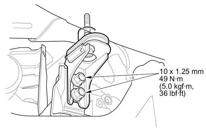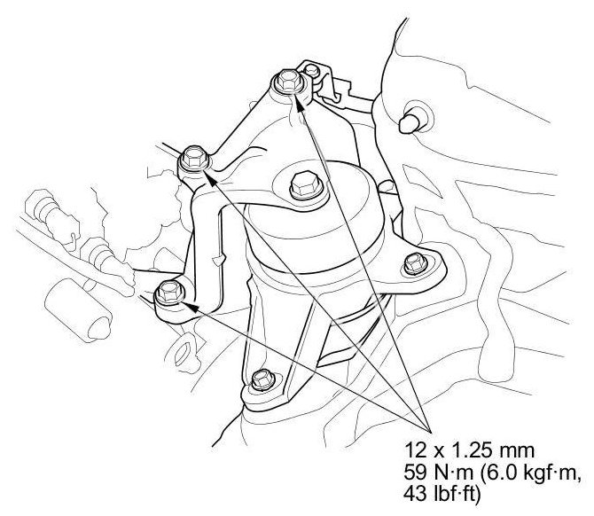 20. M/T model: Tighten the new rear engine mount bolt.