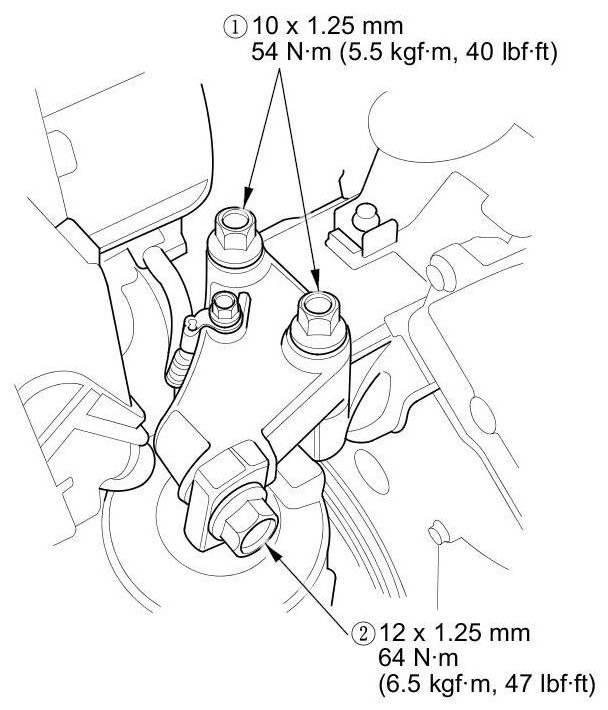 23. Loosen the mounting bolts for the upper transmission mount bracket, then retighten them to the specified torque.