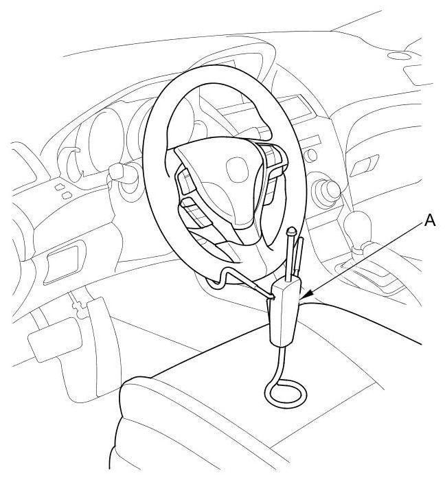 46. Remove the steering wheel holder tool (A).