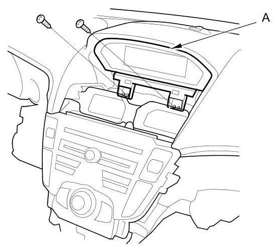 2. Carefully remove the screws from the audio-HVAC display unit (A).