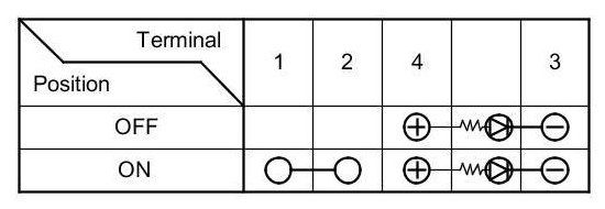 4. Check for continuity between the terminals in each switch position according to the table.