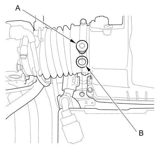 13. Install the filler plug (A) with a new sealing washer (B).