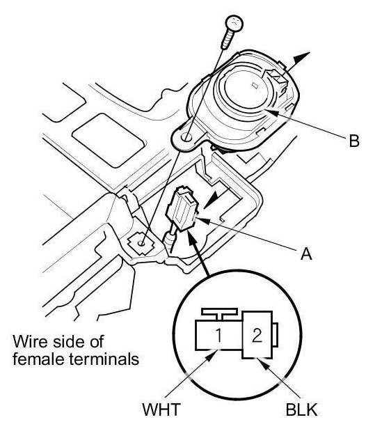 2. Disconnect the 2P connector (A) from the front accessory power socket (B).