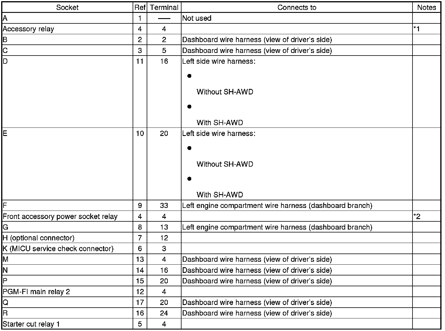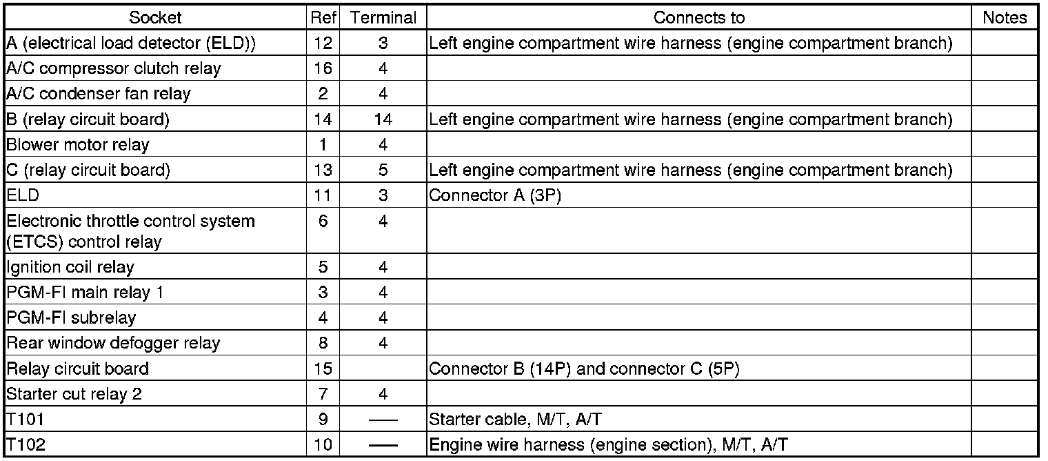 Fuse/Relay Box Connector Locations