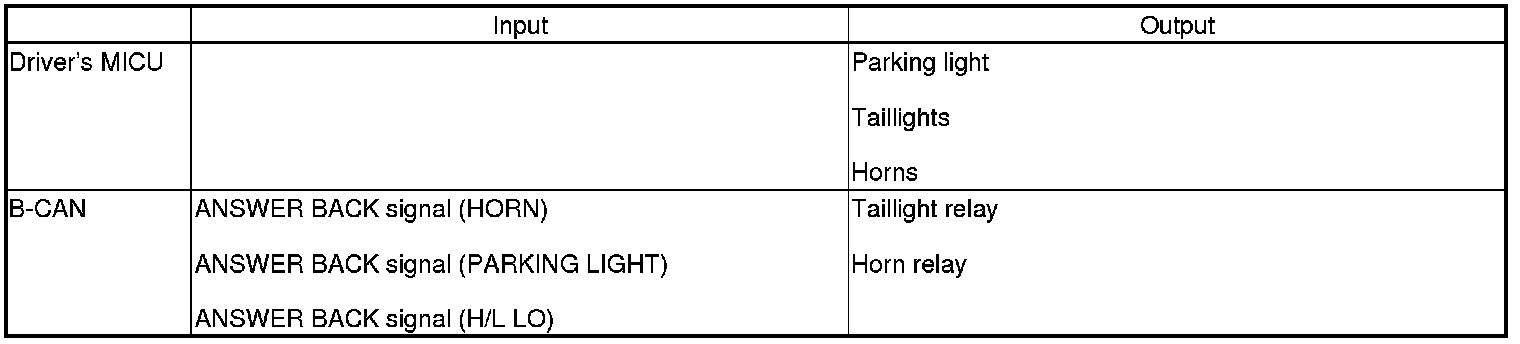 The driver's MICU controls the lighting system and horns based on keyless signals sent by B-CAN.