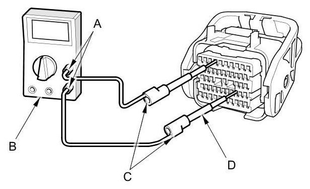 - To prevent damage to the connector terminals, do not insert test equipment probes, paper clips, or other substitutes. Damaged terminals cause a poor connection and an incorrect measurement.