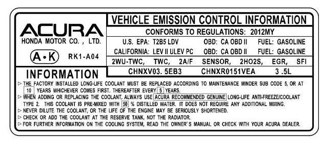 Under-Hood Emission Control Label