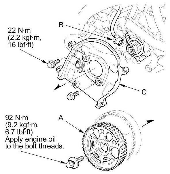 3. Disconnect the CMP sensor connector (B), then remove the back cover (C).
