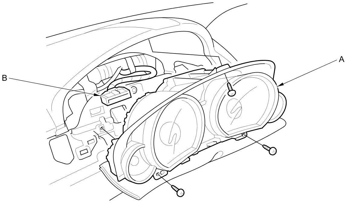 3. Remove the three screws from gauge control module (A), then pull the gauge control module out carefully.