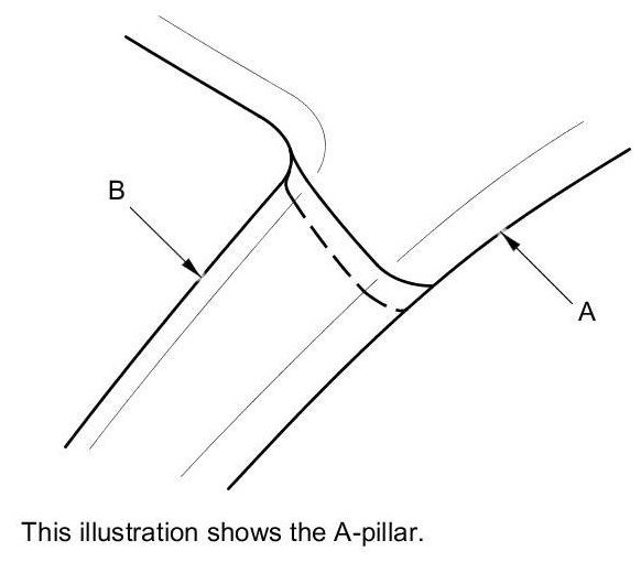 To prevent the side curtain airbag from deploying and damaging the pillar trim (A-pillar trim, B-pillar trim, C-pillar trim), the overlap between the headliner and pillar trim must be less then 8 mm(0.3 in) To check the overlap, do this: