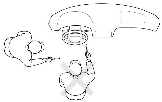 - Never do electrical tests on the airbags, such as measuring resistance.