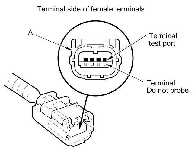 - To prevent damage to the connector terminals, do not insert the test equipment probes, paper clips, or other substitutes as they can damage the terminals. Damaged terminals can cause a poor connection and an incorrect measurement.