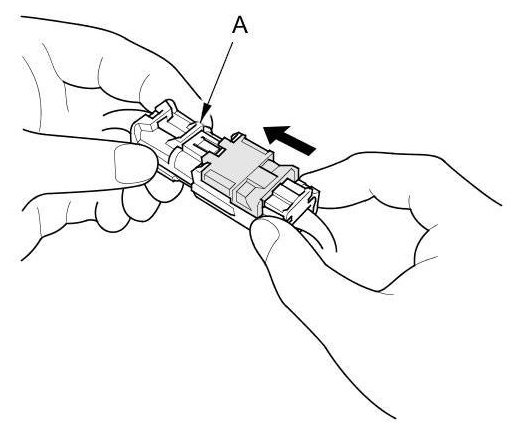 Hold both connector halves, and press them firmly together until the projection (A) of the sleeve-side connector clicks.