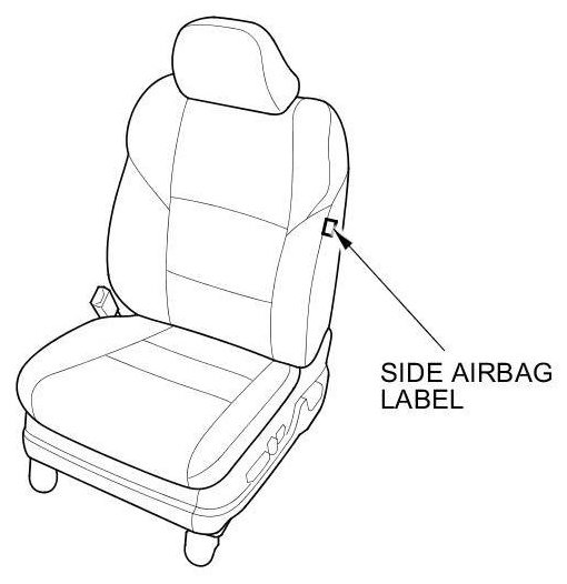 Front seats with side airbags have a "SIDE AIRBAG" label on the seat-back.