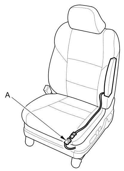 7. Disconnect the SRS floor wire harness 2P connectors (A) from the left and right side curtain airbag 2P connectors.