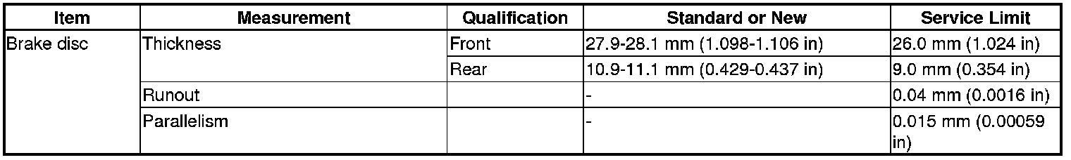 Brake Disc Specification(s)